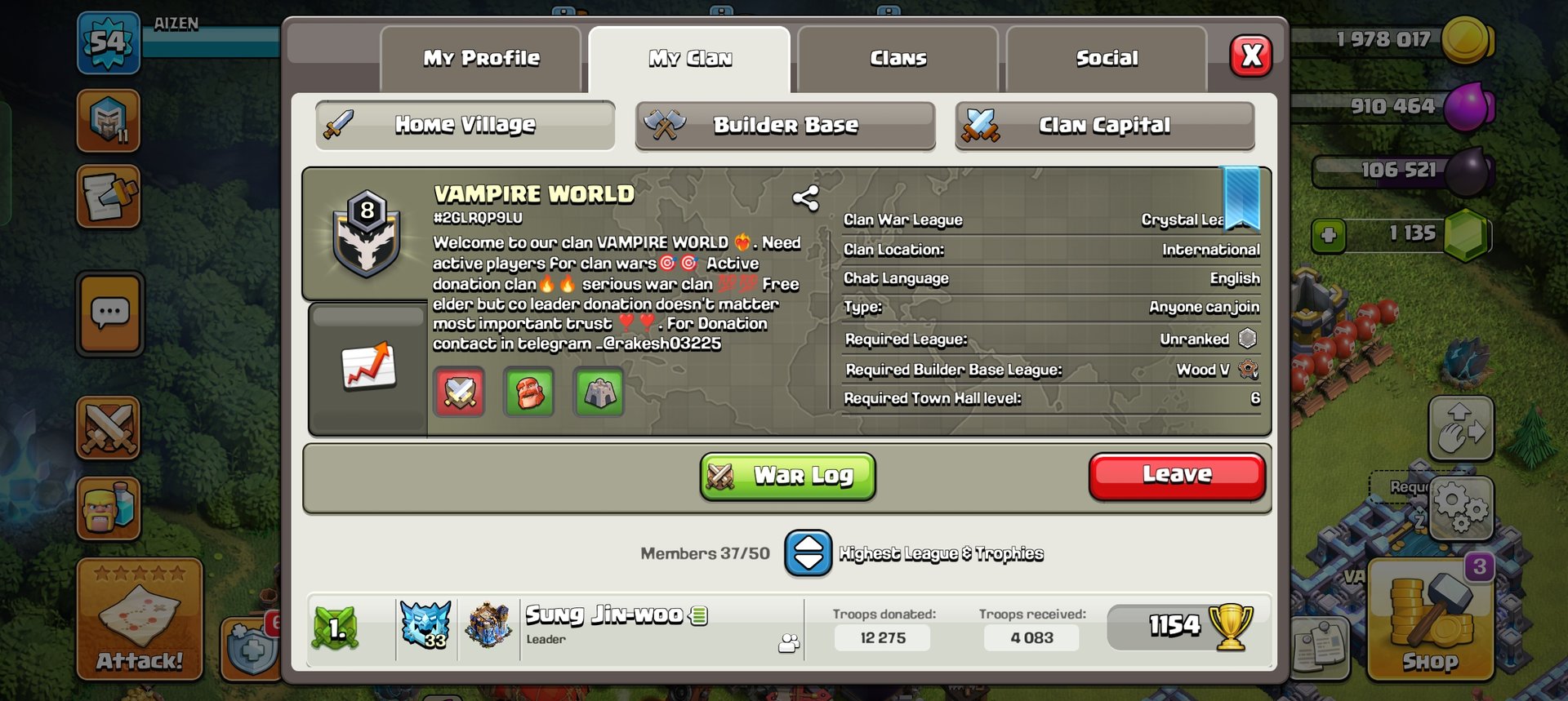 ACTIVE WAR CLAN LOOKING FOR ACTIVE PLAYERS FOR CWL AND BACK TO BACK WAR. TH14+ PREFERRED, TH10 MINIMUM. LOST HALF BECAUSE CO-LEAD MESSED UP LAST CWL. NEED TO GROW BACK TO FULL STRENGTH
