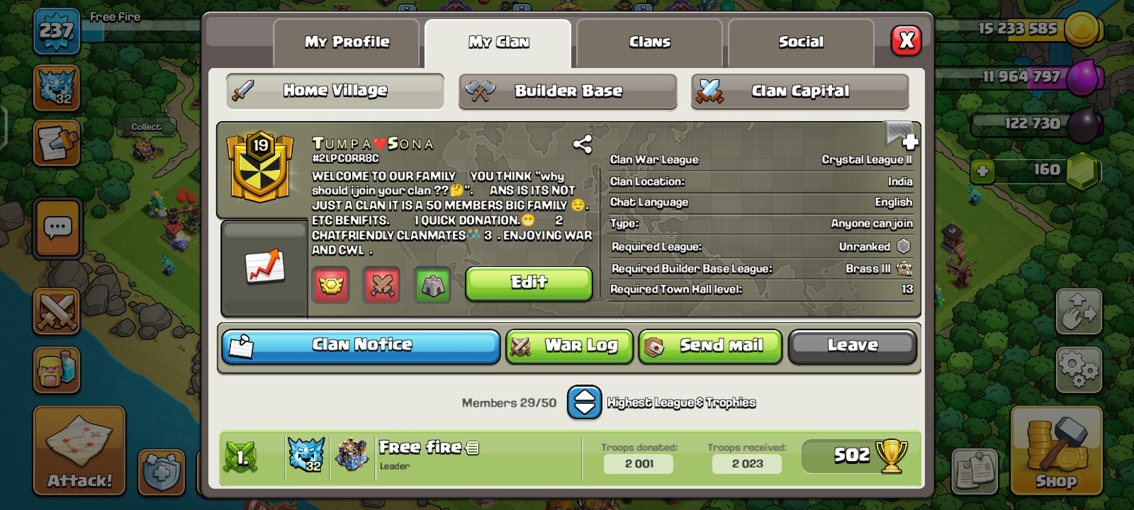 If you cant love this clan, how the h3ll you going to love anybody elses? Active participation please! War frequency is always, you must choose to opt in or out. We are always consistent in clan games and raid weekend. Laid back clan! Newbie friendly! LGBTQ+